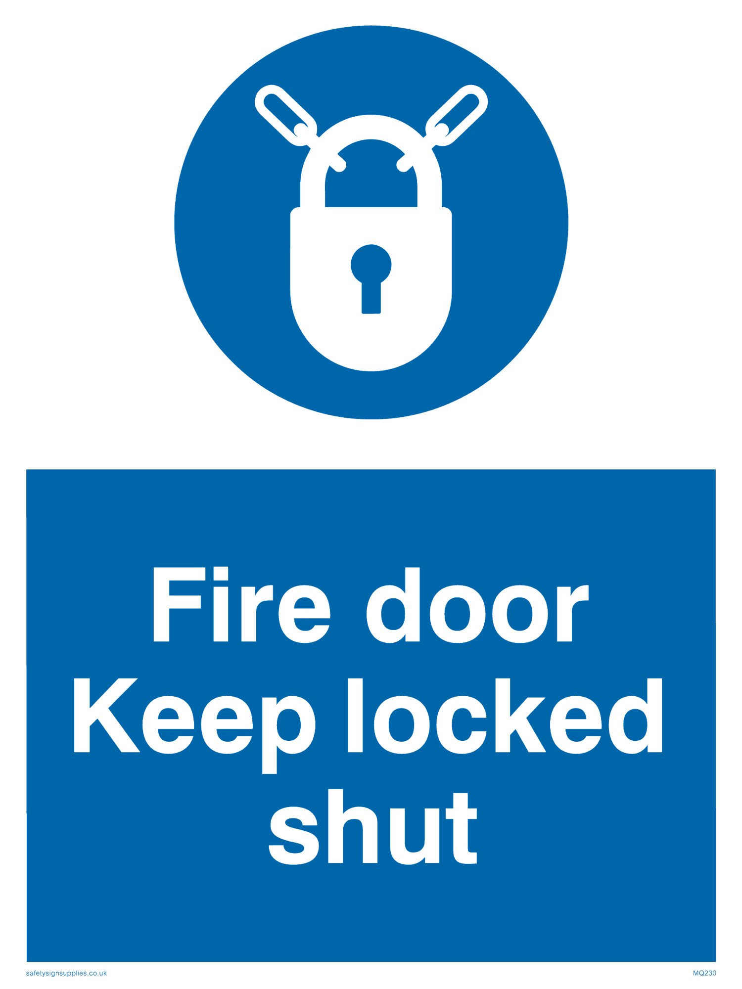 This sign contains a lock required symbol. Padlock in white within a blue circle.