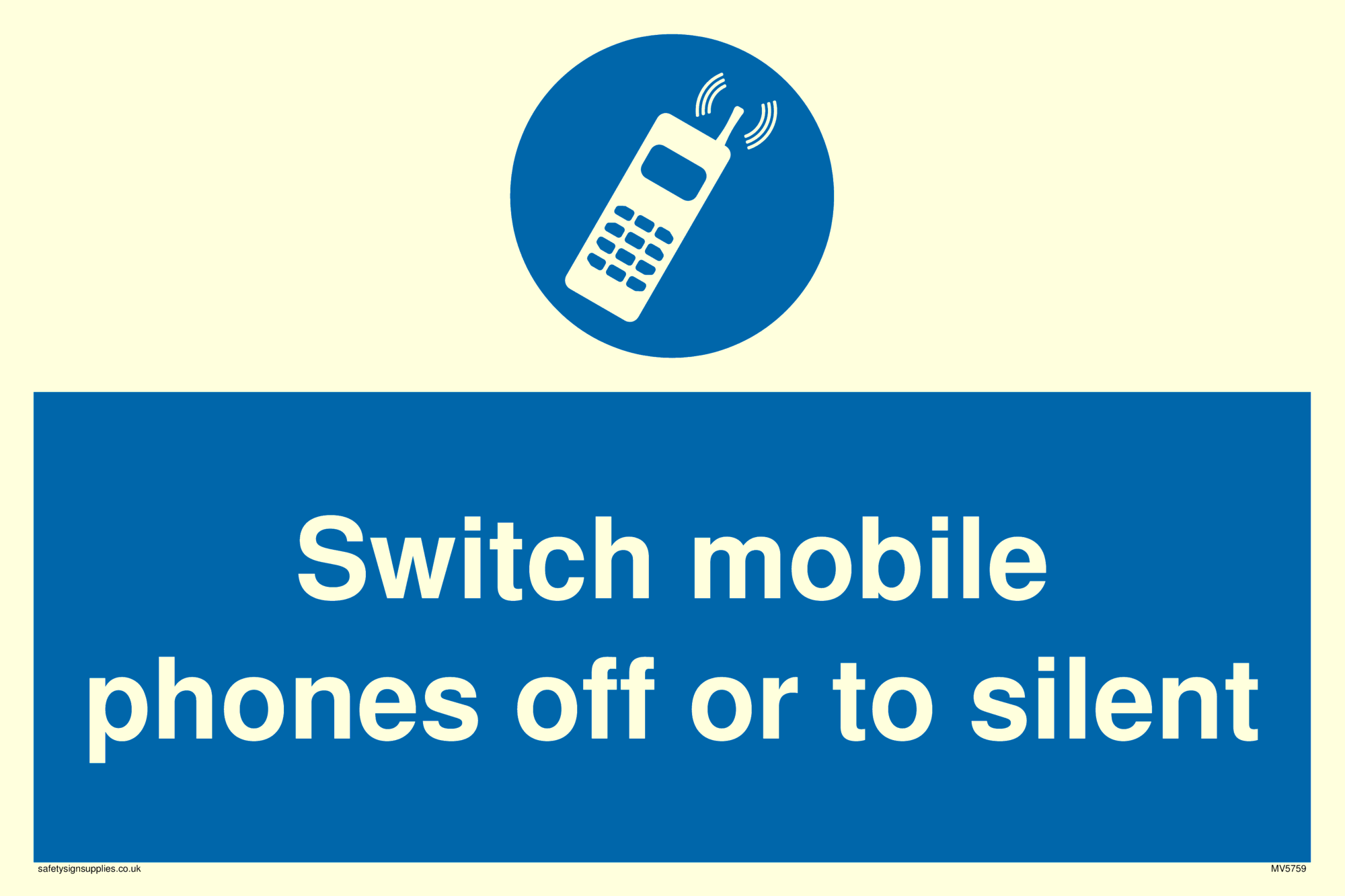 This sign shows a mandatory mobile sign. It shows a mobile phone symbol and is used in signs were you want to give people a specific instruction regarding their mobile phone. For Example if mobile phones must be switched off or switched to silent/airplane mode.