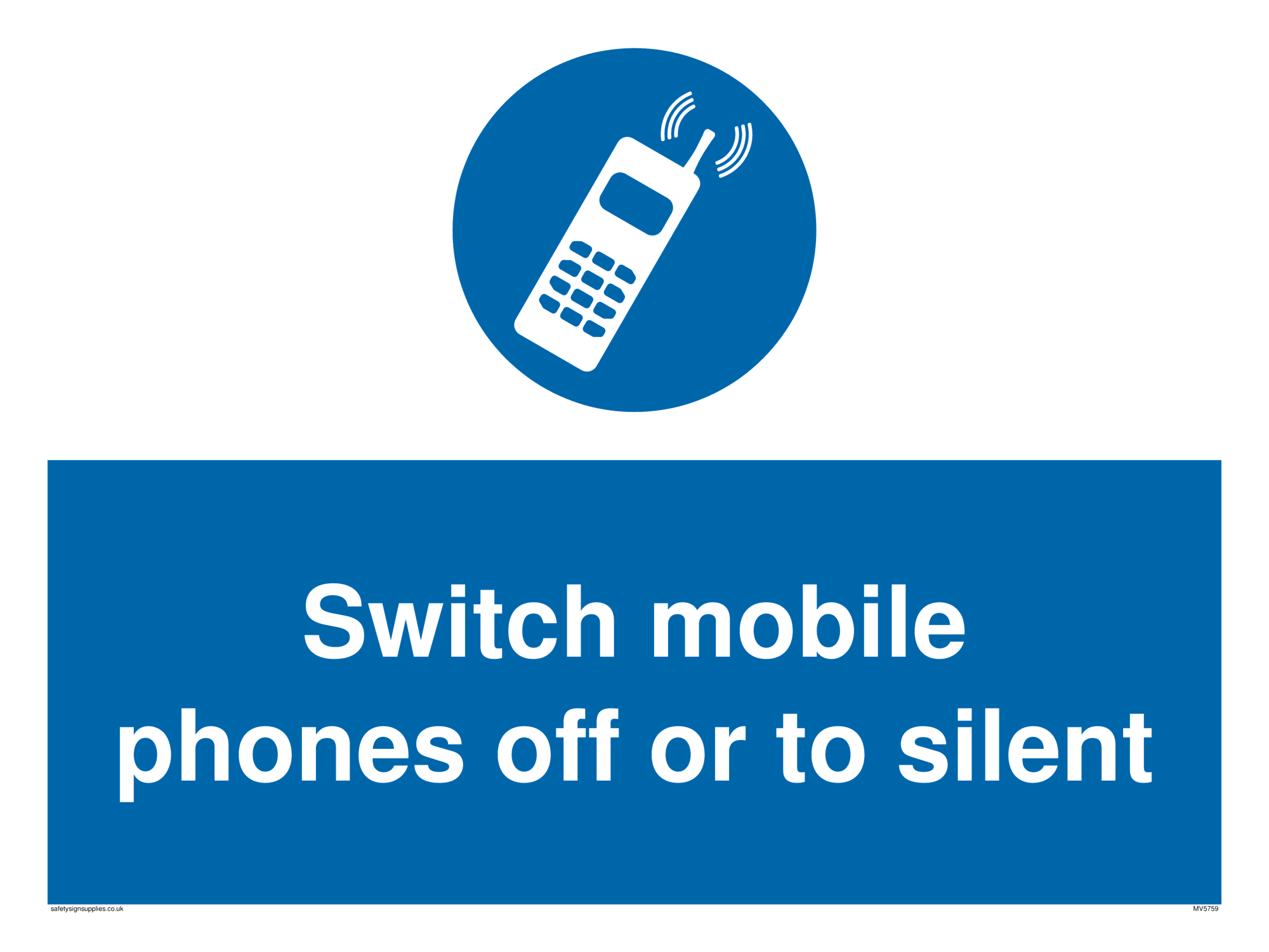 This sign shows a mandatory mobile sign. It shows a mobile phone symbol and is used in signs were you want to give people a specific instruction regarding their mobile phone. For Example if mobile phones must be switched off or switched to silent/airplane mode.