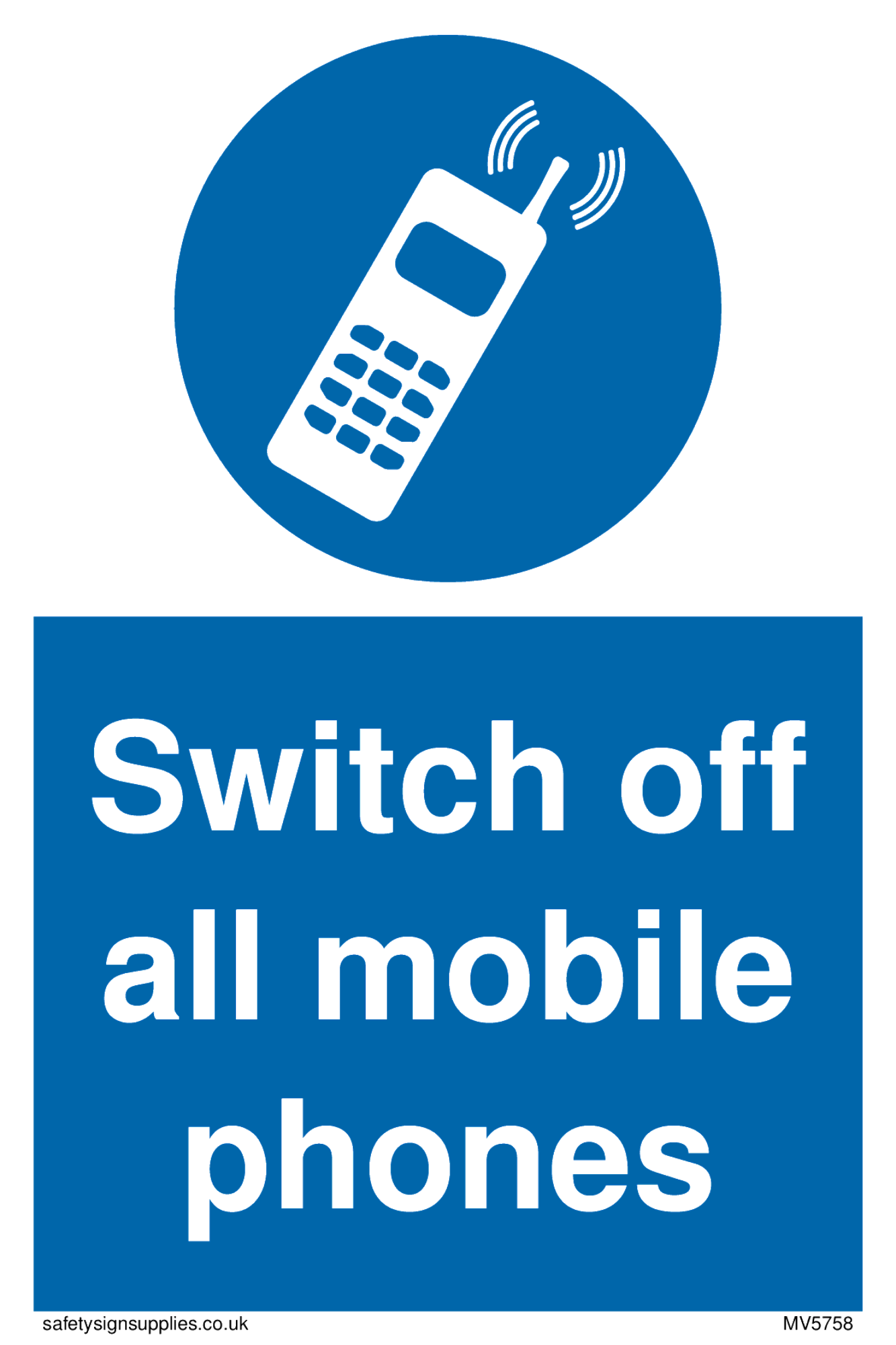 This sign shows a mandatory mobile sign. It shows a mobile phone symbol and is used in signs were you want to give people a specific instruction regarding their mobile phone. For Example if mobile phones must be switched off or switched to silent/airplane mode.