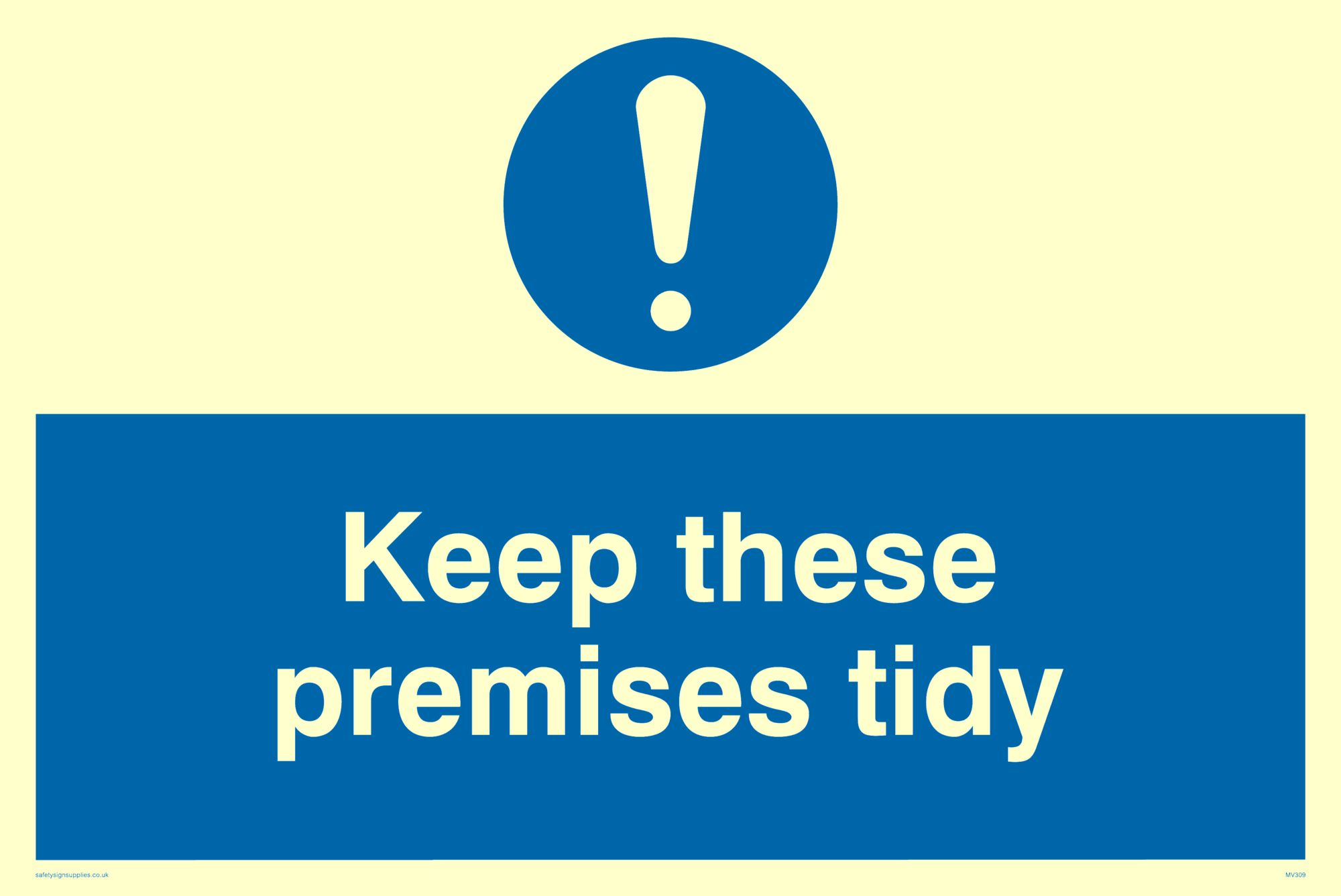 This sign contains a general Mandatory Exclamation Symbol - exclamation mark in white on blue circle background.