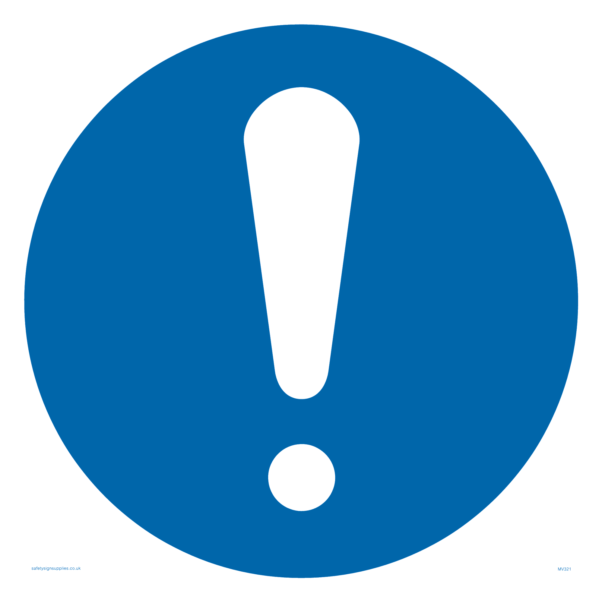 This sign contains a general Mandatory Exclamation Symbol - exclamation mark in white on blue circle background.