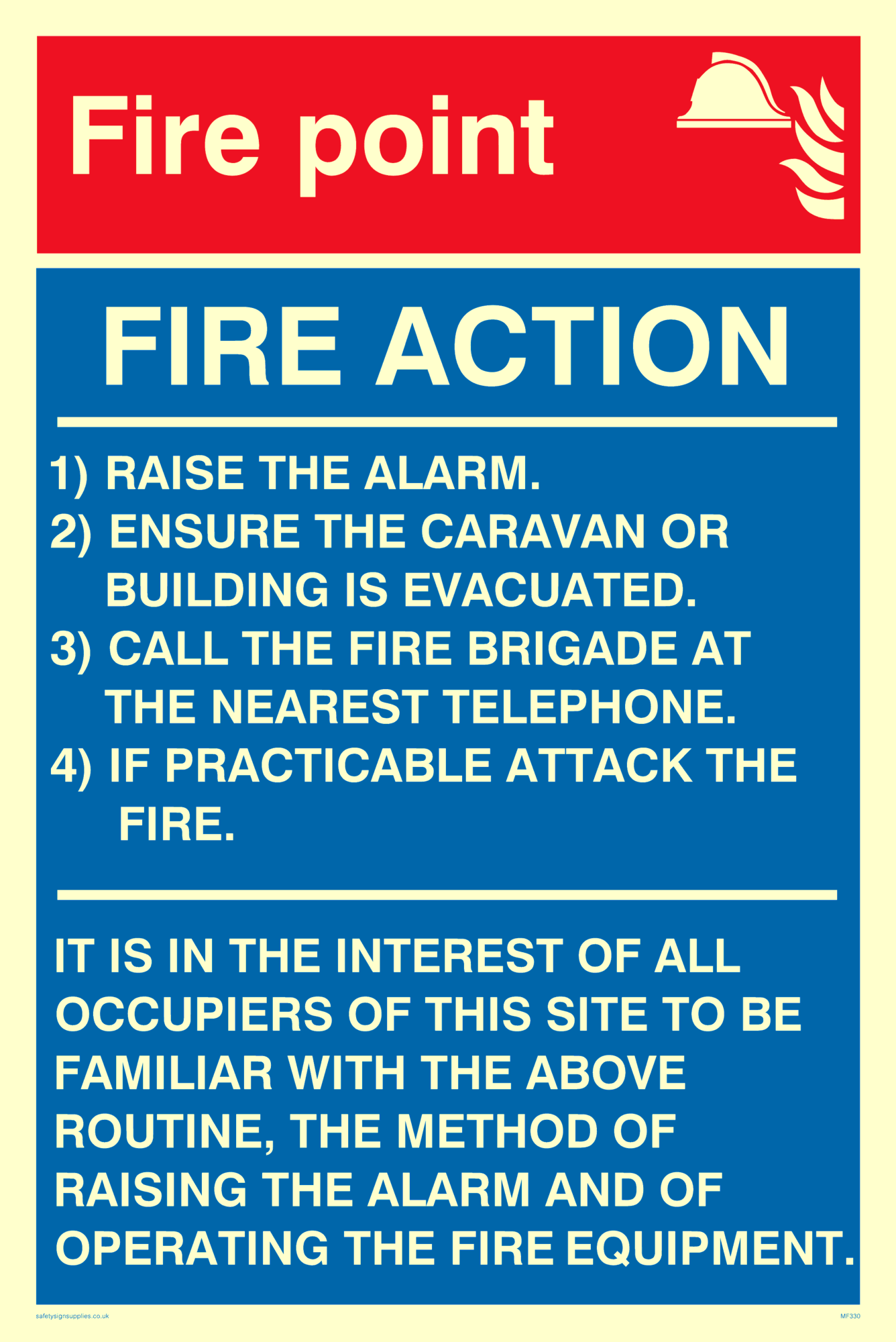 Fire Action signs contain instructions for the actions to be taken in case of fire.