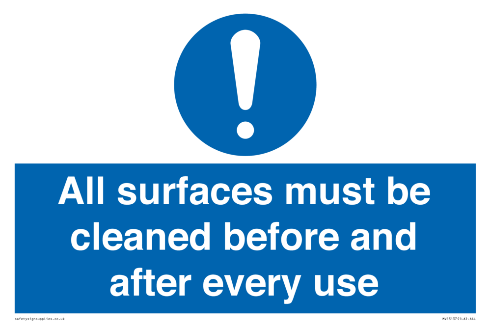 All surfaces must be cleaned before and after every use Sign