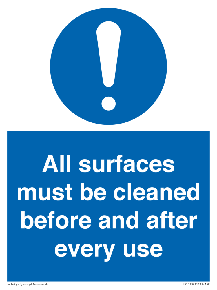 All surfaces must be cleaned before and after every use Sign