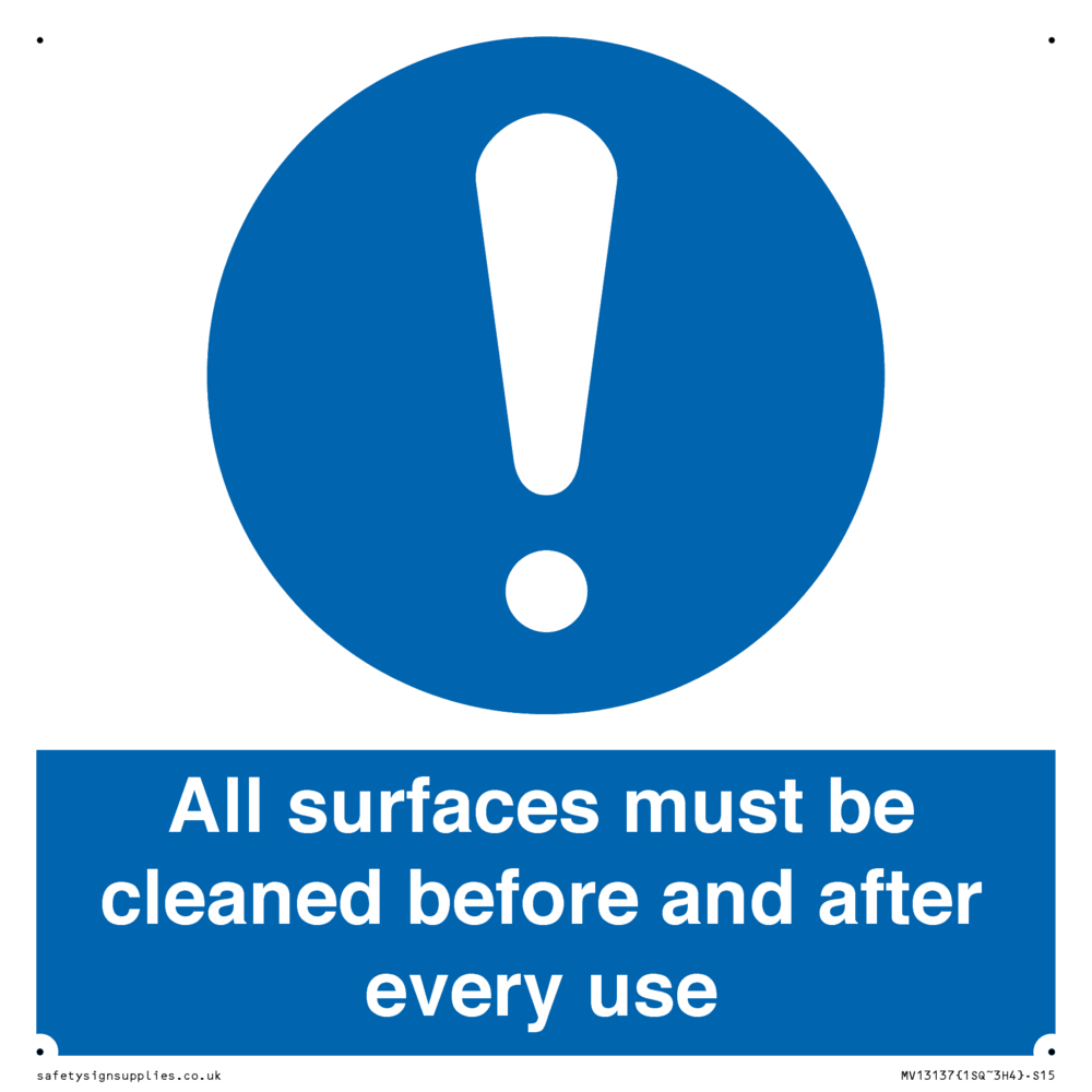 All surfaces must be cleaned before and after every use Sign