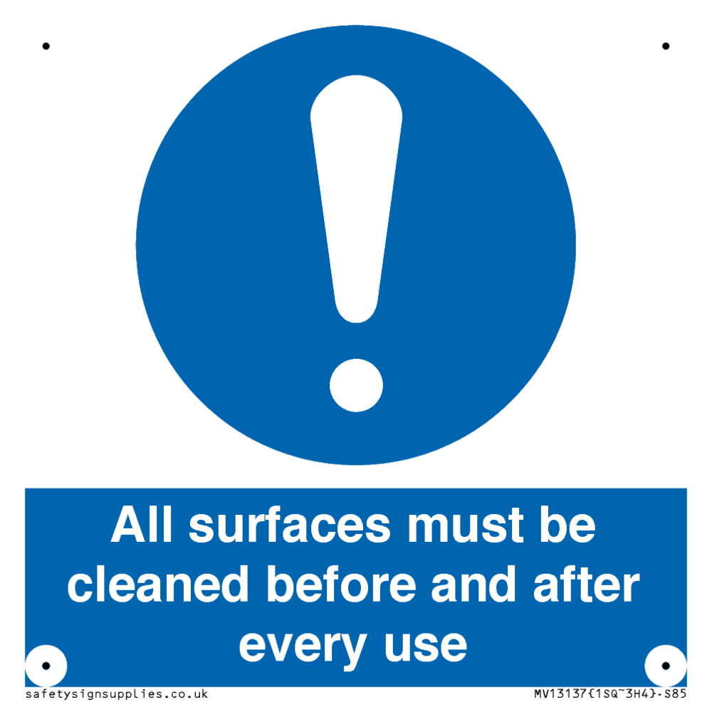 All surfaces must be cleaned before and after every use Sign