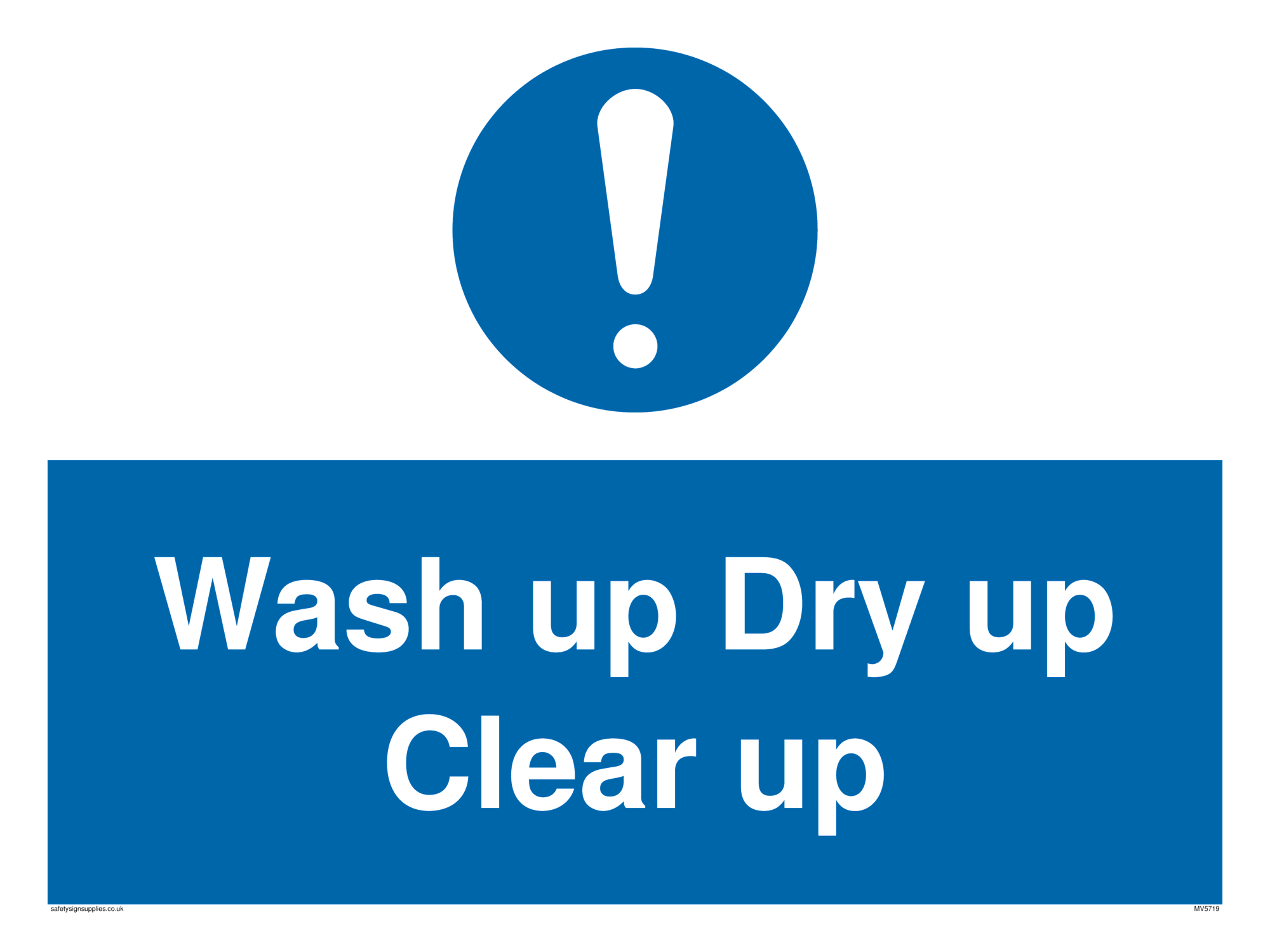 Hygiene / Health signs are often used in the catering industry to indicate measures required to ensure a hygienic environment. Cleaning signs give warnings instructions during or relating to cleaning. BS5499 signs are designed to meet the applicable British Standard 5499, normally relating to fire exit signs. This sign is large. This sign is approximately equivalent to A3 paper size.