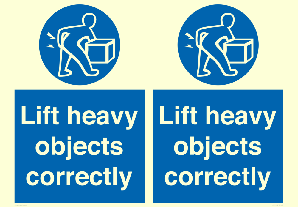 Sign Text: Lift heavy objects correctly