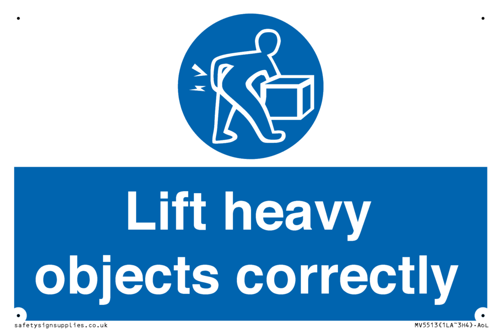 Sign Text: Lift heavy objects correctly