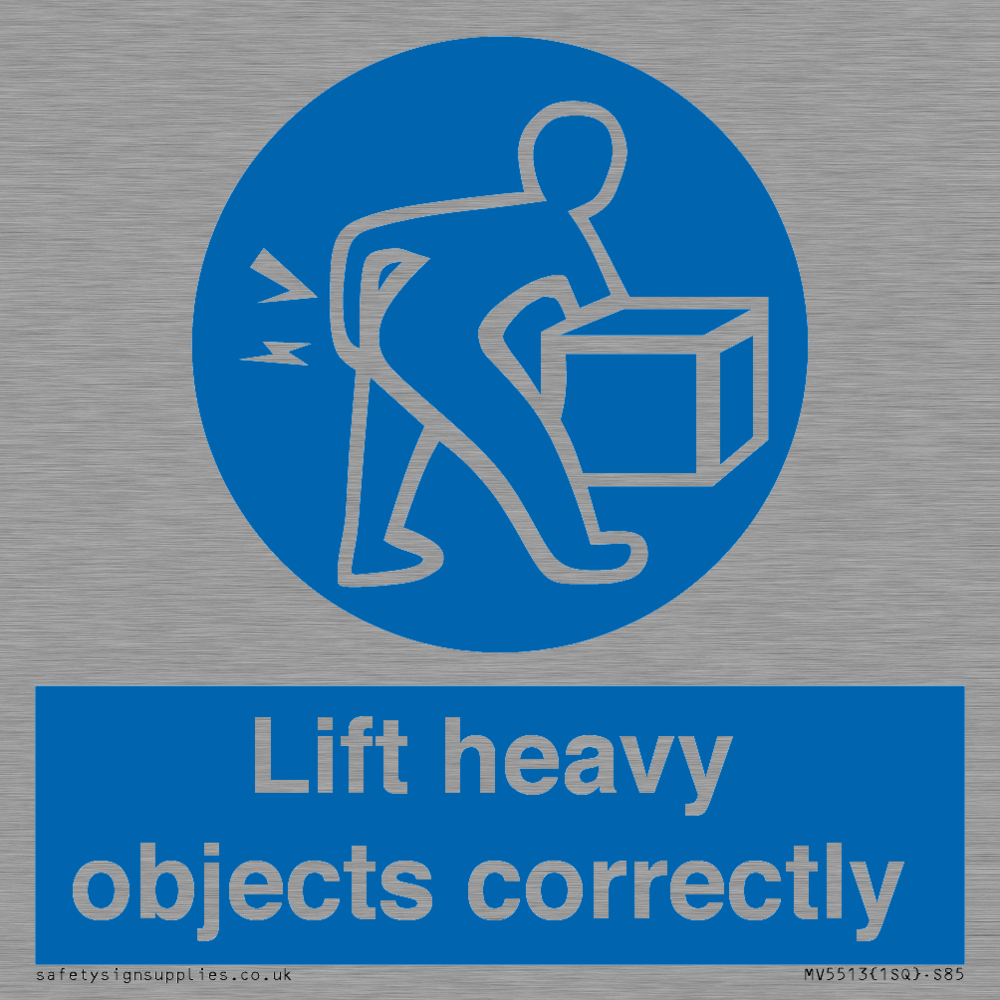Sign Text: Lift heavy objects correctly