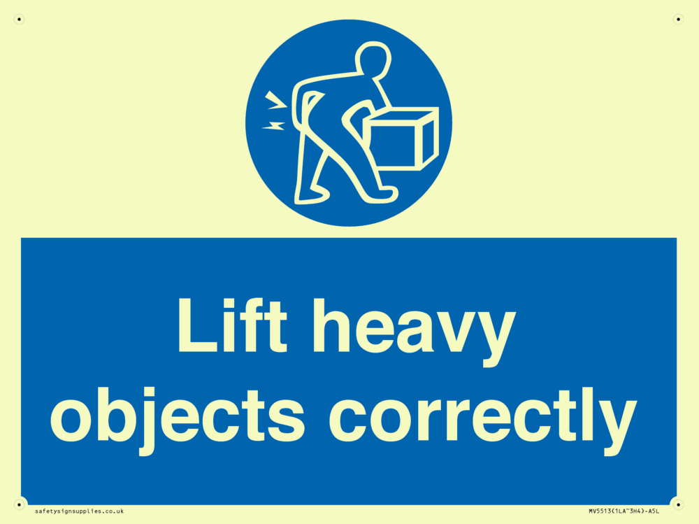 Sign Text: Lift heavy objects correctly
