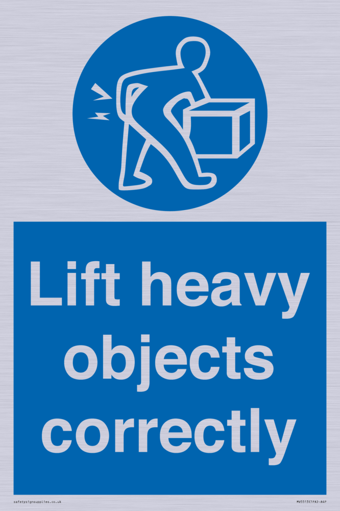 Sign Text: Lift heavy objects correctly