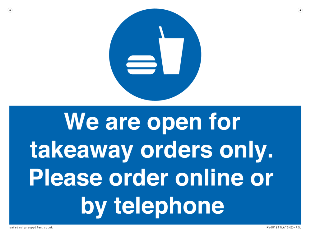 We are open for takeaway orders only. Please order online or by telephone Sign