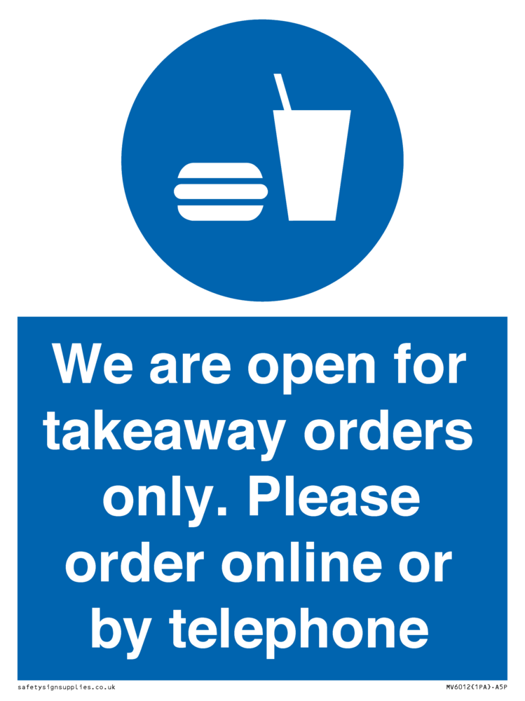 We are open for takeaway orders only. Please order online or by telephone Sign