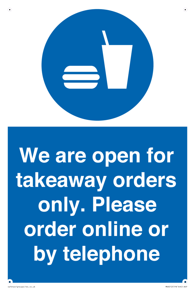 We are open for takeaway orders only. Please order online or by telephone Sign