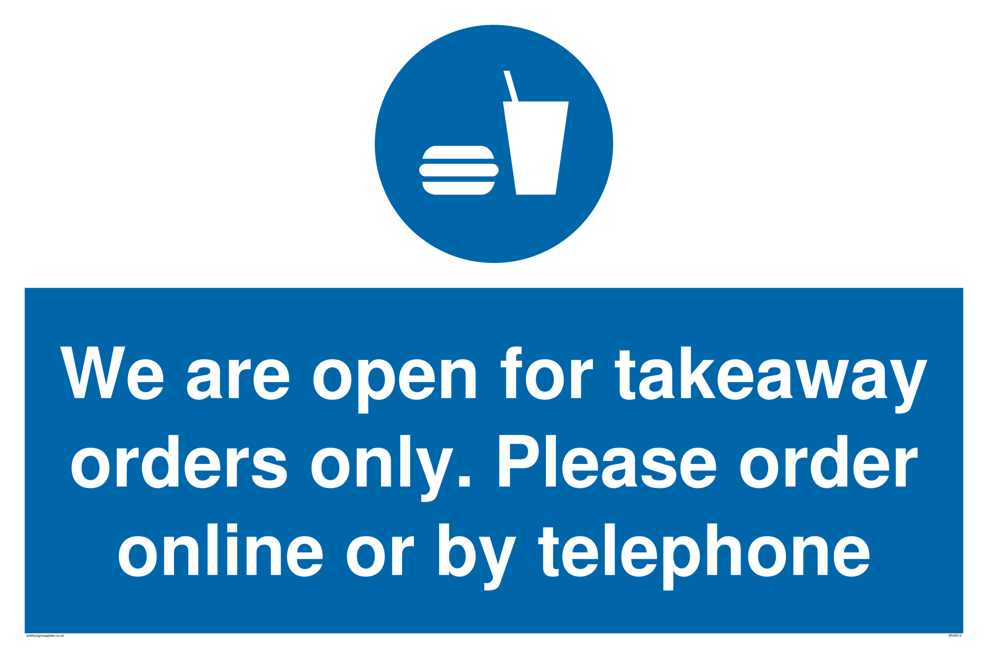 We are open for takeaway orders only. Please order online or by telephone Sign