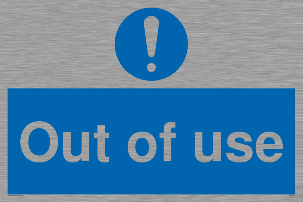 This sign contains a general Mandatory Exclamation Symbol - exclamation mark in white on blue circle background.