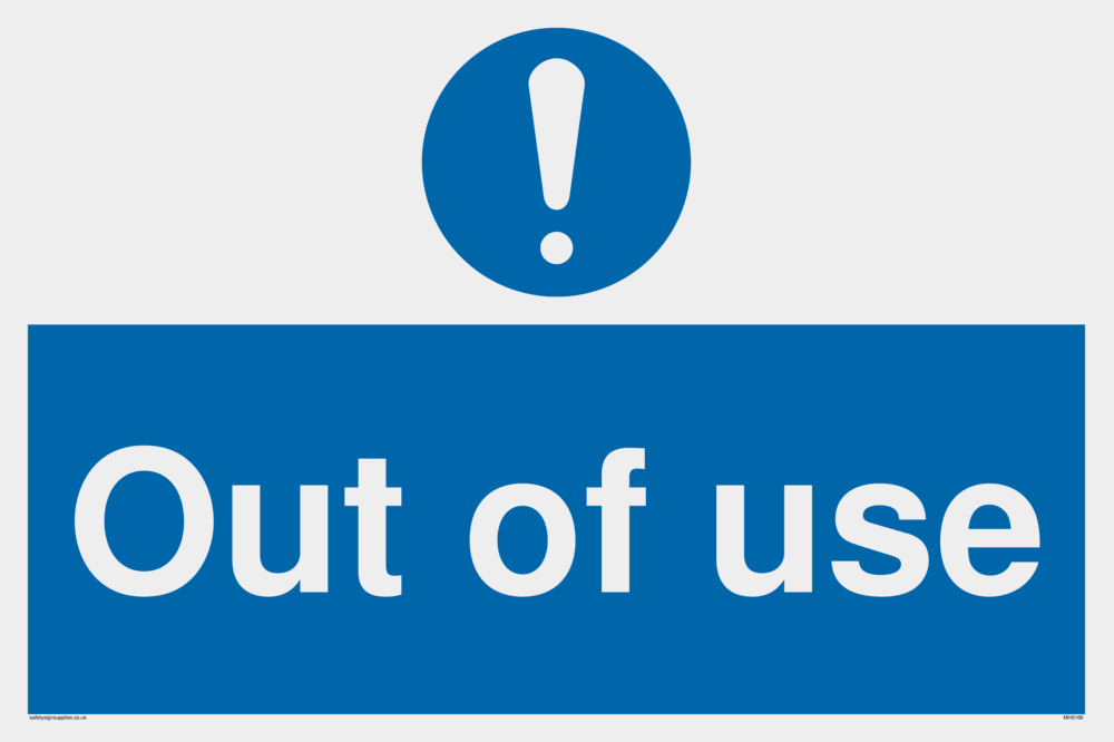 This sign contains a general Mandatory Exclamation Symbol - exclamation mark in white on blue circle background.