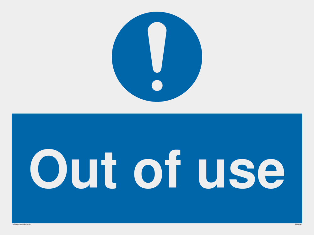This sign contains a general Mandatory Exclamation Symbol - exclamation mark in white on blue circle background.