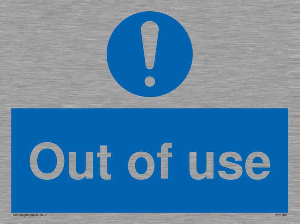 This sign contains a general Mandatory Exclamation Symbol - exclamation mark in white on blue circle background.