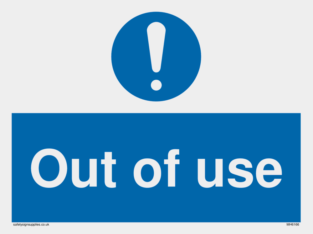 This sign contains a general Mandatory Exclamation Symbol - exclamation mark in white on blue circle background.