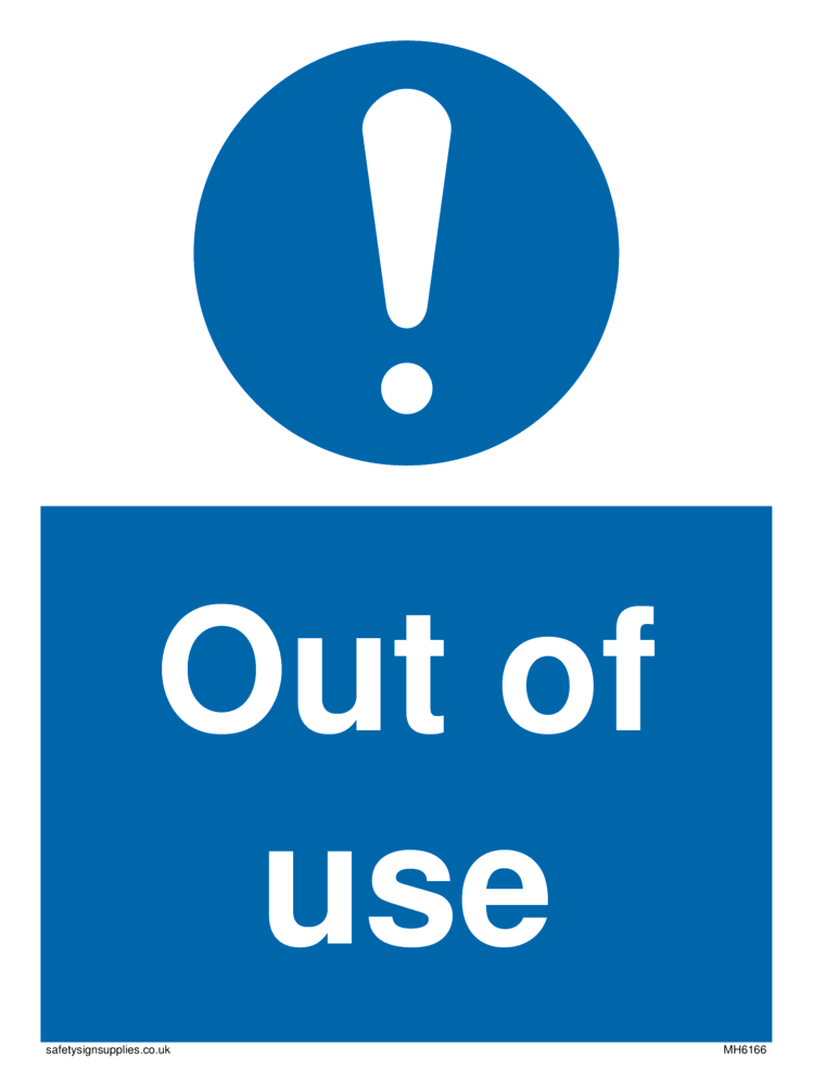 This sign contains a general Mandatory Exclamation Symbol - exclamation mark in white on blue circle background.