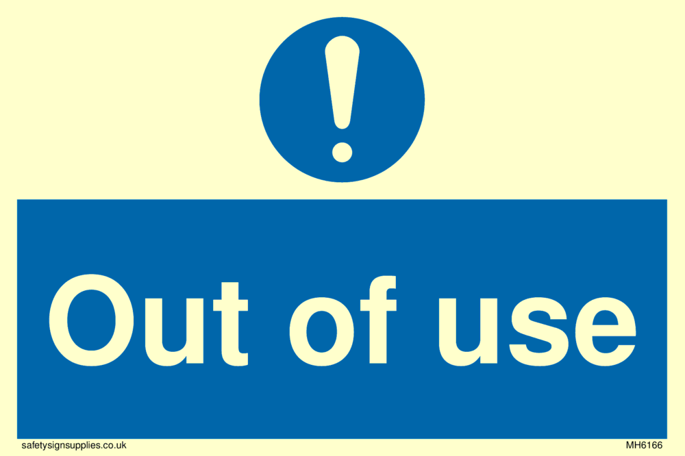 This sign contains a general Mandatory Exclamation Symbol - exclamation mark in white on blue circle background.