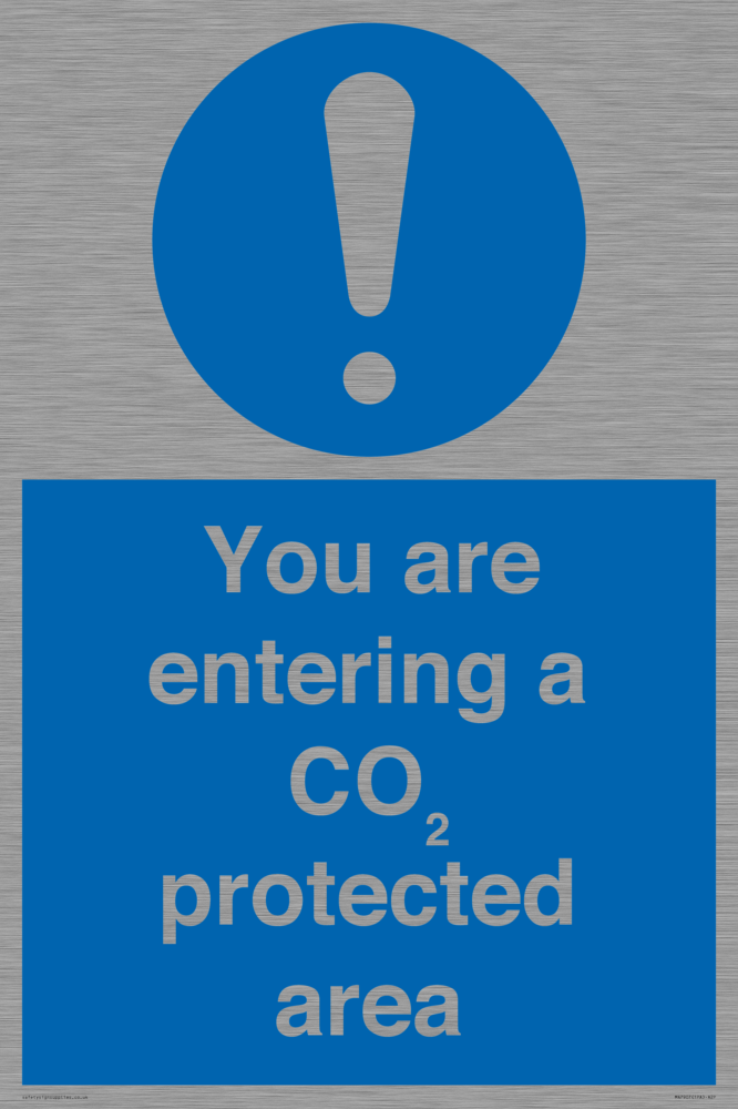 This sign contains a general Mandatory Exclamation Symbol - exclamation mark in white on blue circle background.