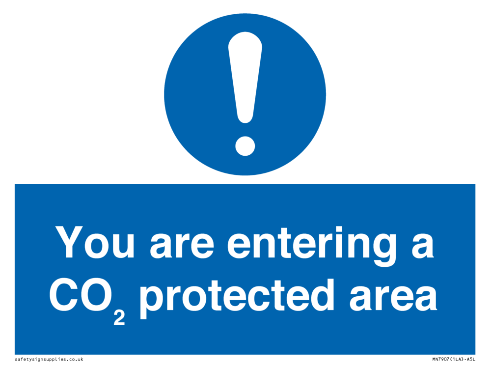 This sign contains a general Mandatory Exclamation Symbol - exclamation mark in white on blue circle background.