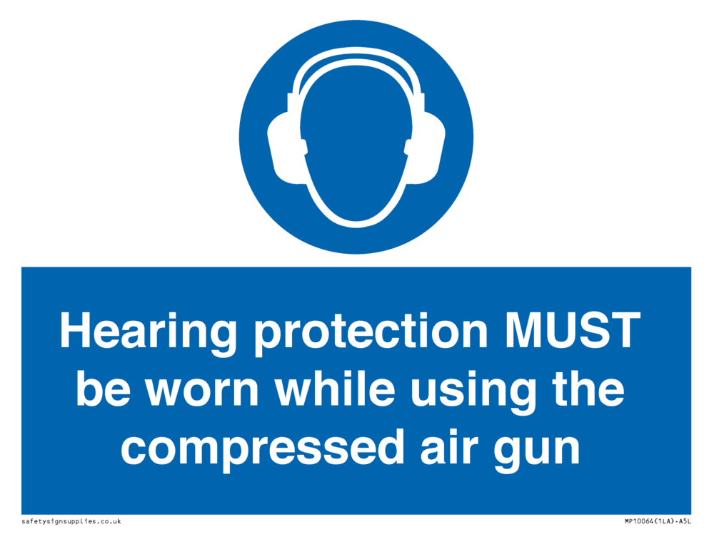 Sign Text: Hearing protection MUST be worn while using the compressed air gun