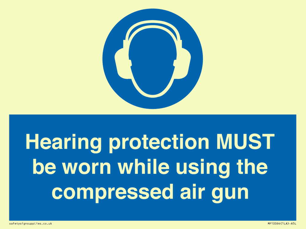 Sign Text: Hearing protection MUST be worn while using the compressed air gun