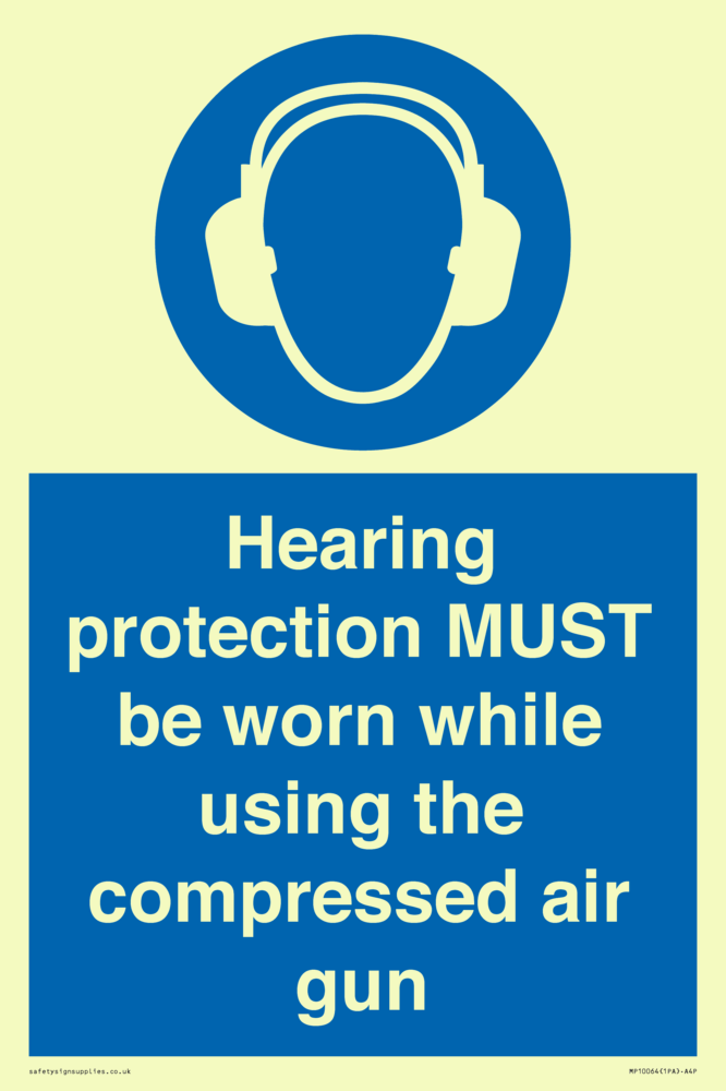 Sign Text: Hearing protection MUST be worn while using the compressed air gun