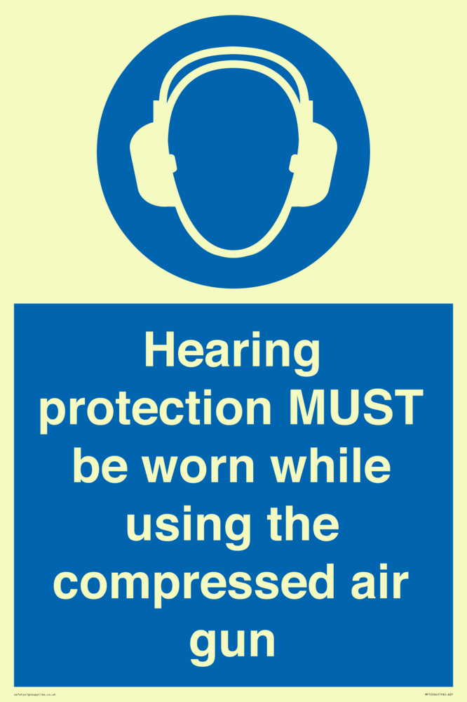 Sign Text: Hearing protection MUST be worn while using the compressed air gun