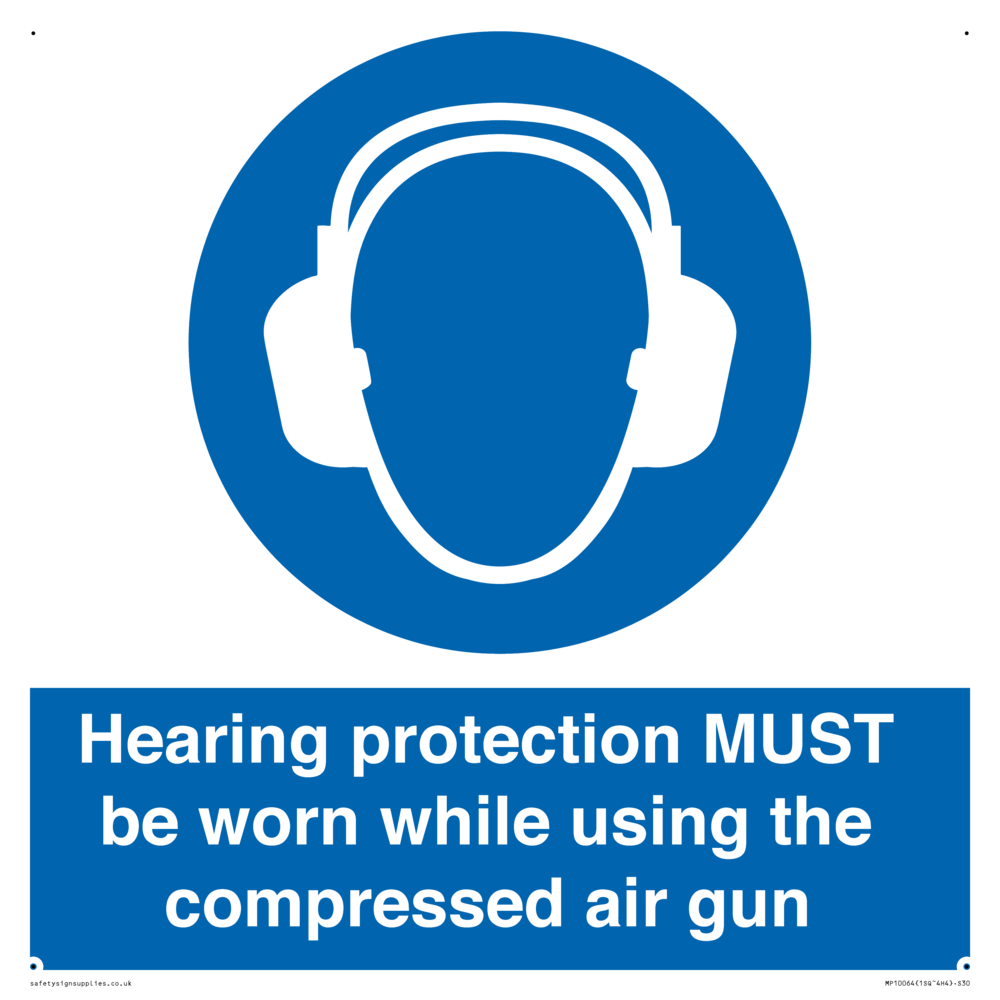 Sign Text: Hearing protection MUST be worn while using the compressed air gun