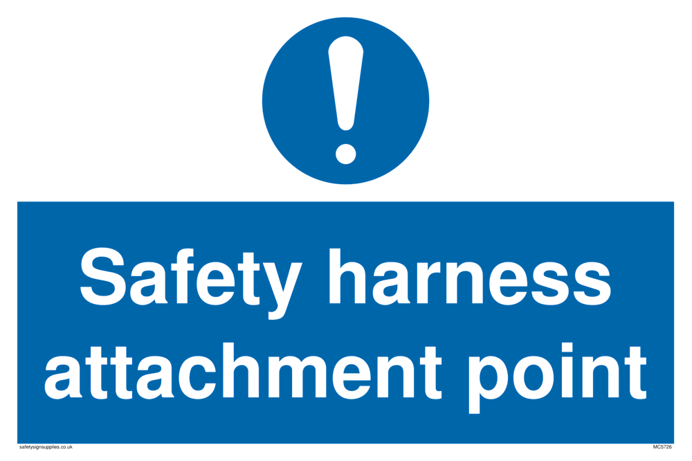 This sign contains a general Mandatory Exclamation Symbol - exclamation mark in white on blue circle background.