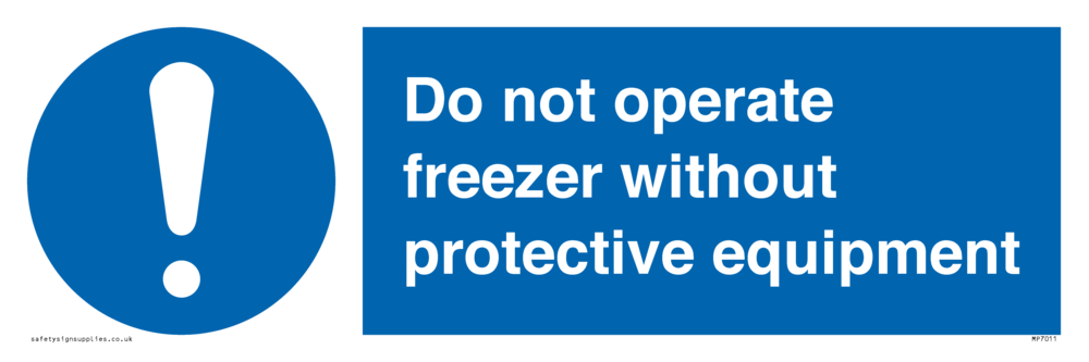 Do not operate freezer without protective equipment Sign