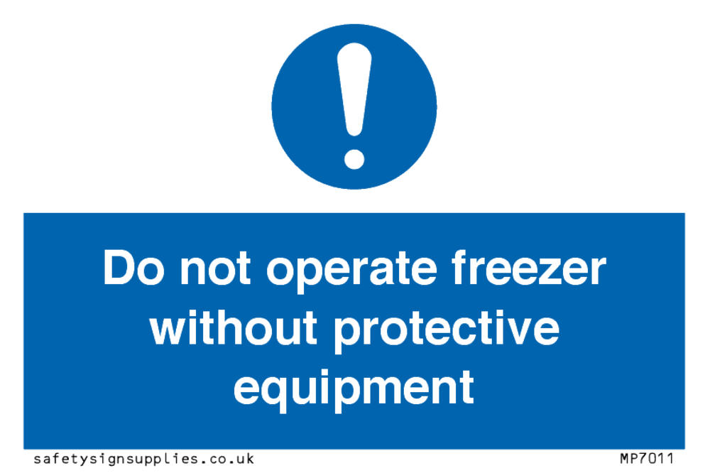 Do not operate freezer without protective equipment Sign