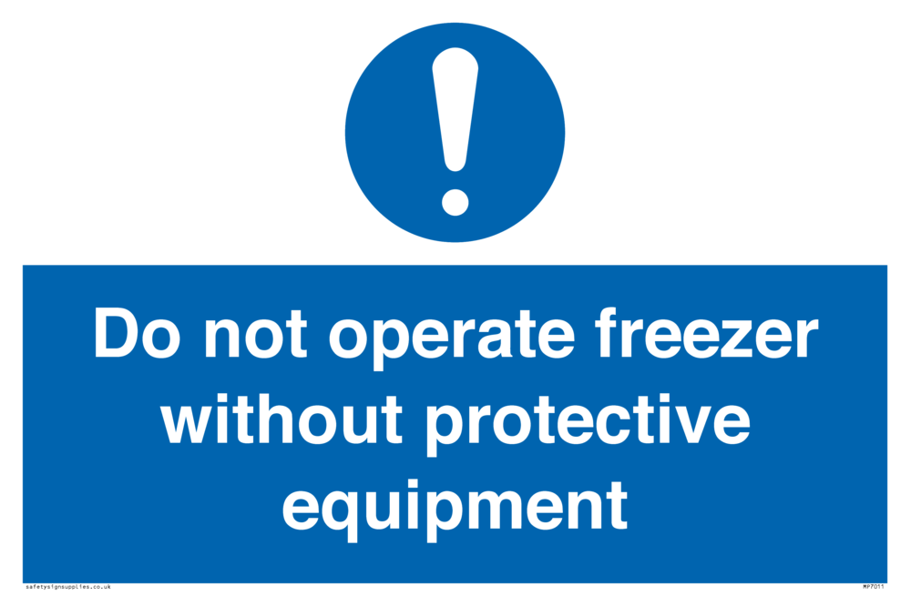 This sign contains a general Mandatory Exclamation Symbol - exclamation mark in white on blue circle background.