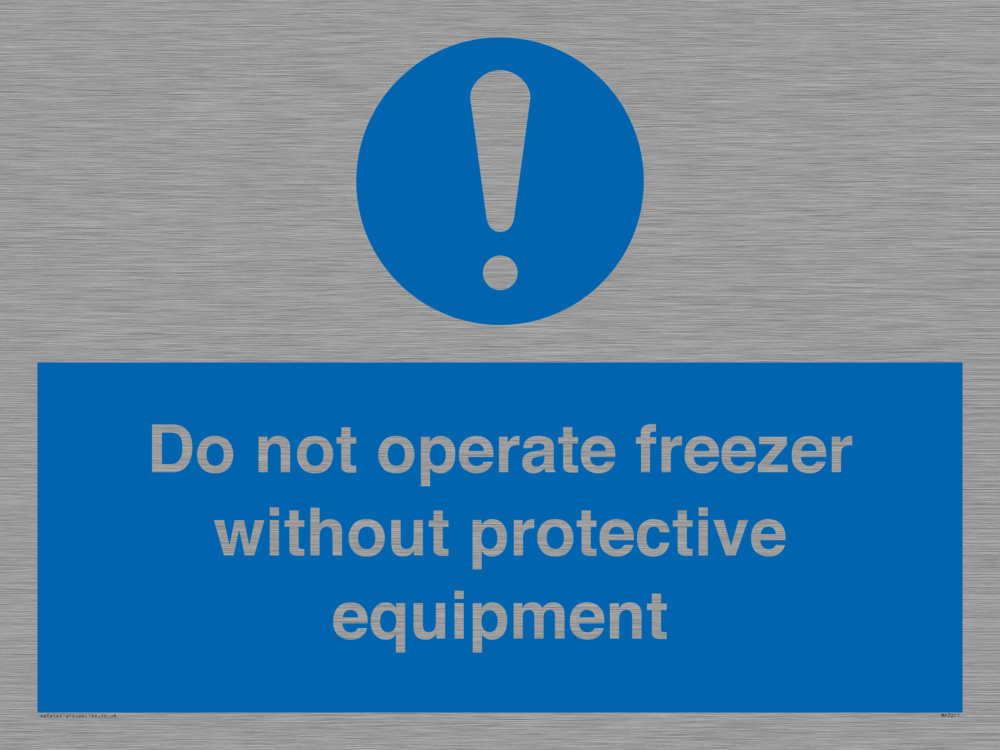 This sign contains a general Mandatory Exclamation Symbol - exclamation mark in white on blue circle background.