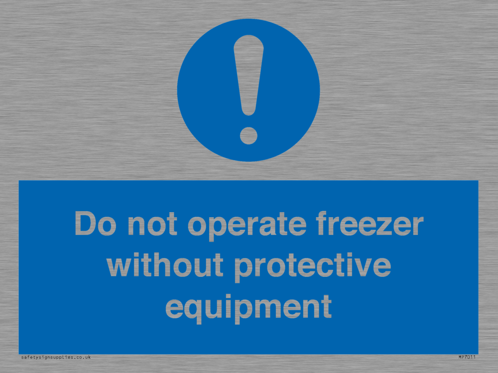 Sign Text: Do not operate freezer without protective equipment
