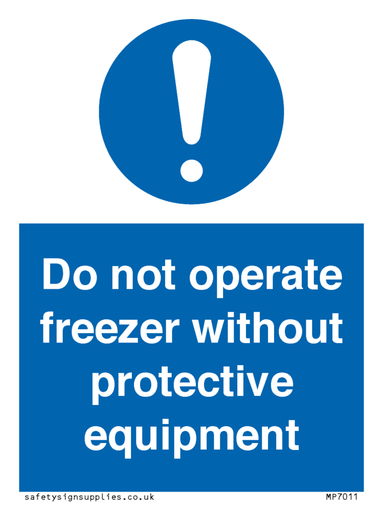 Do not operate freezer without protective equipment Sign