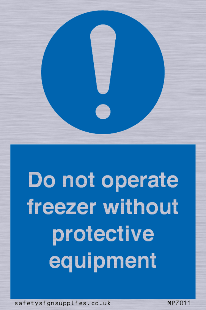 Sign Text: Do not operate freezer without protective equipment