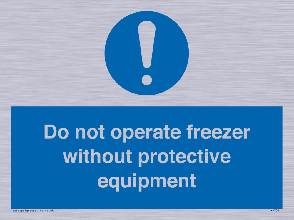 This sign contains a general Mandatory Exclamation Symbol - exclamation mark in white on blue circle background.
