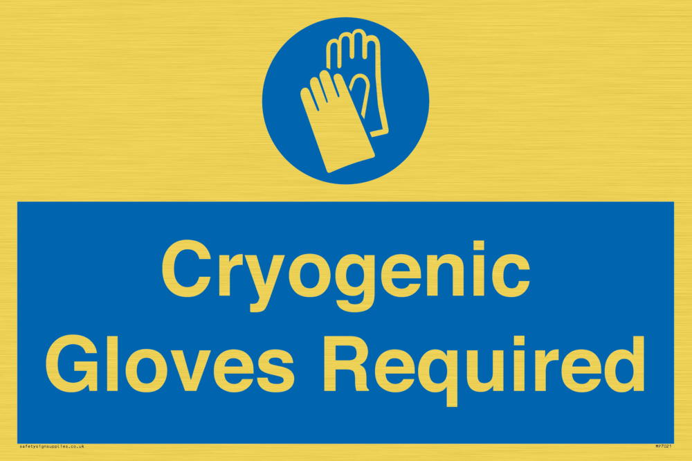 This sign contains a protective gloves required symbol - gloves in white within blue circle. Comes with a self adhesive backing. 200mm or approximately 8" high.