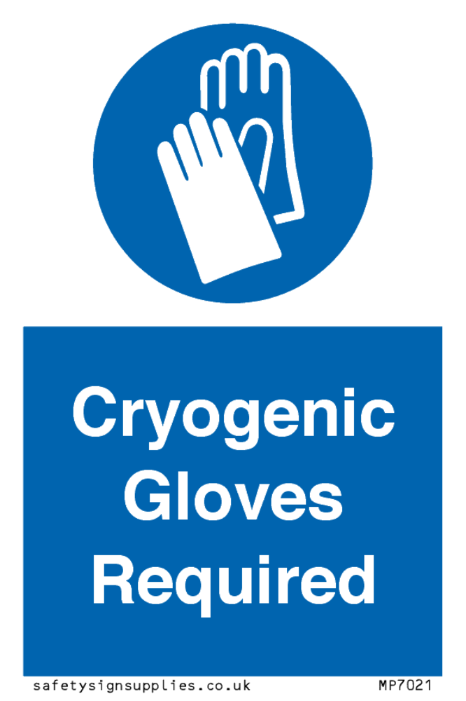 This sign contains a protective gloves required symbol - gloves in white within blue circle. Comes with a self adhesive backing. 75mm or approximately 3" high.