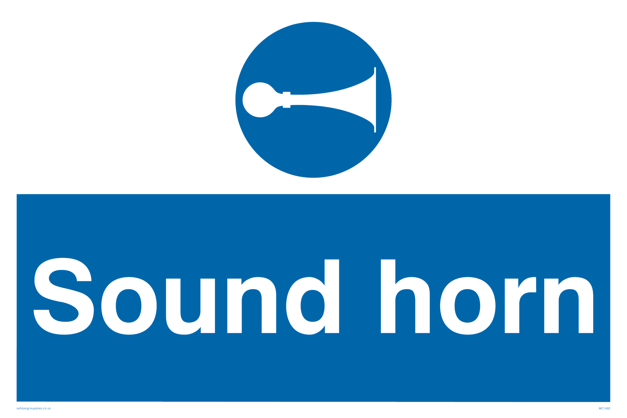 This sign contains a horn symbol. This is usually used to instruct people to sound there horn when reversiging or telling a particular vehicle, like a fork-lift must sound their horn. Comes with a self adhesive backing.