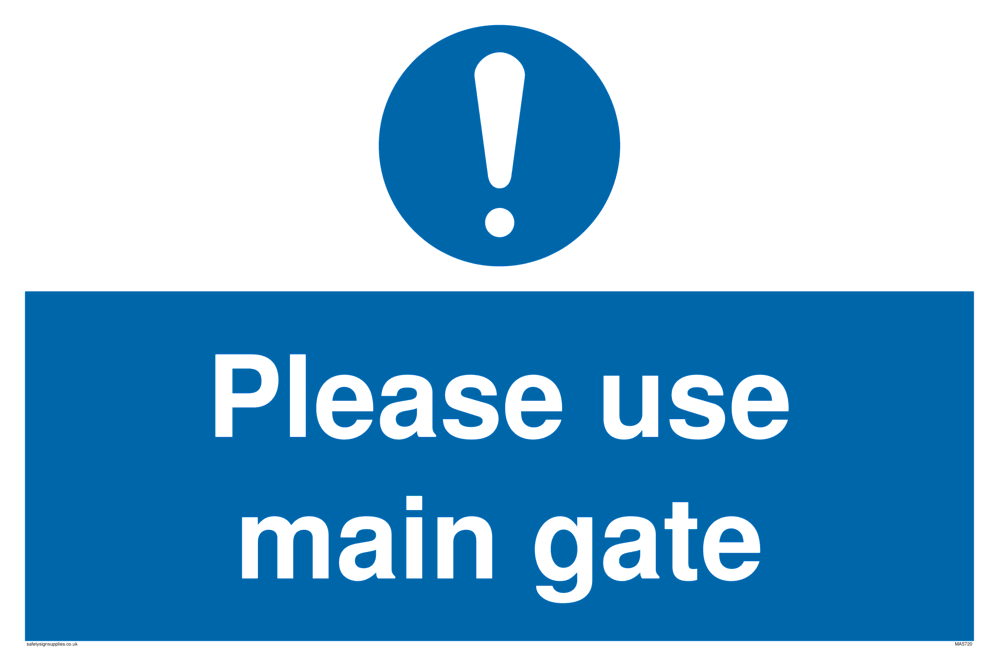 This sign contains a general Mandatory Exclamation Symbol - exclamation mark in white on blue circle background.