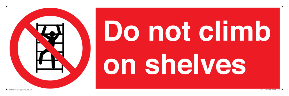 Sign Text: Do not climb on shelves