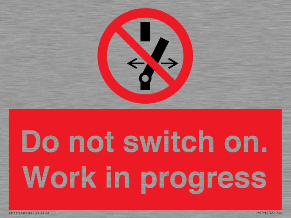 Sign Text: Do not switch on. Work in progress Product Type: Prohibition Safety Signs Dimensions: 200x150mm Material: Stainless Steel Orientation: Landscape Text Colour: White More...